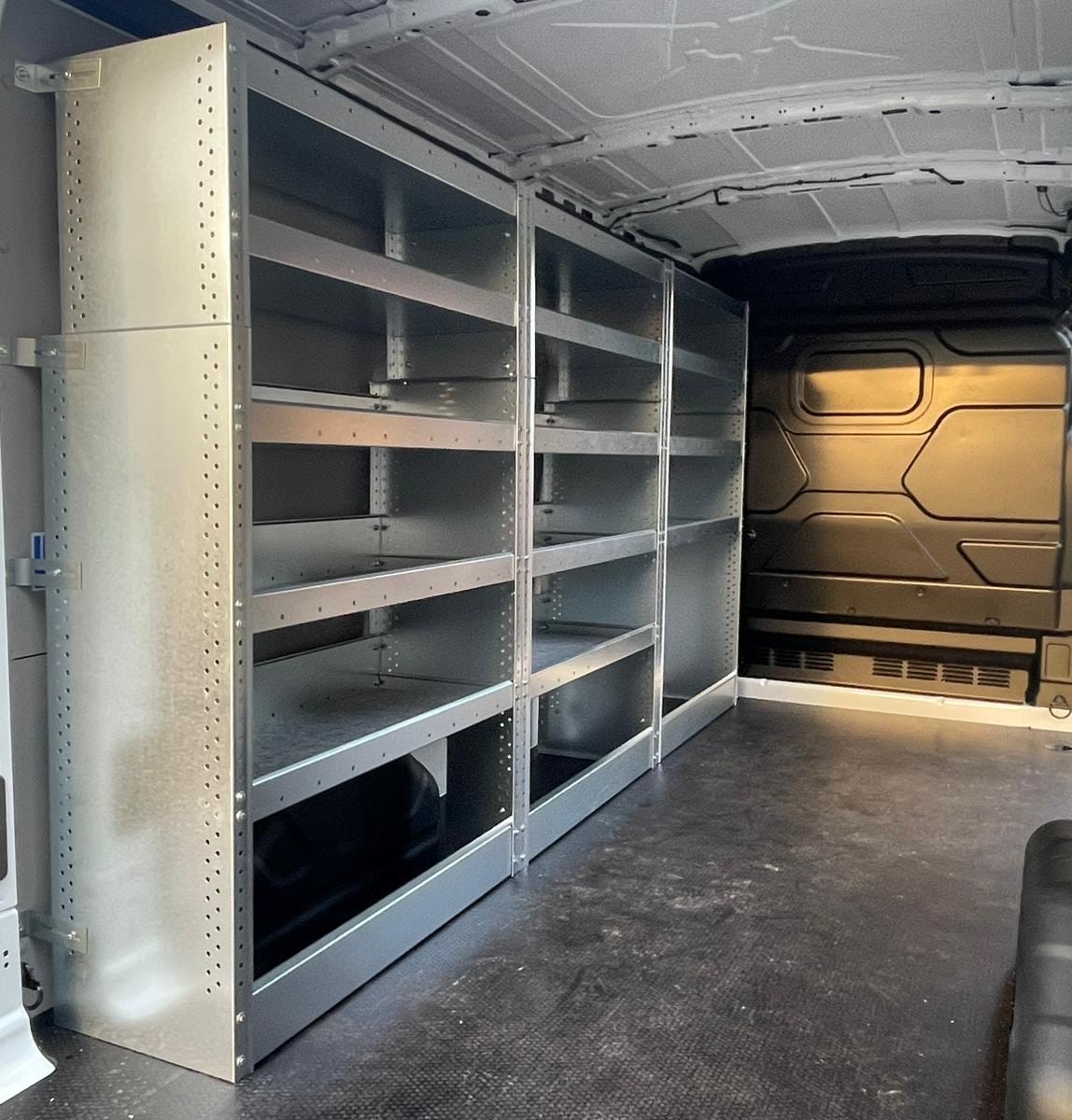 Regále vyrábame na mieru pre každé vozidlo zvlášť, podľa dĺžky a výšky priestoru vo vozidle. Taktiež hĺbka regálu je variabilná a tak vieme pokryť všetky vaše individuálne požiadavky. Jednotlivé regále sa spájajú skrutkami a vytvoria tak dokonale pevný celok v celkovej dĺžke nákladného priestoru.