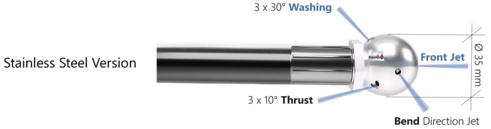 Tryska vyrobená z nehrdzavejúcej ocele alebo mosadze, vynikajúca na prejazd zákrutami a udržiavanie pravého alebo ľavého smeru podľa polohy bočného otvoru. Použitie : Čistenie vápenca, mydla, bahna, mastných zvyškov, prechádzanie cez zákruty.